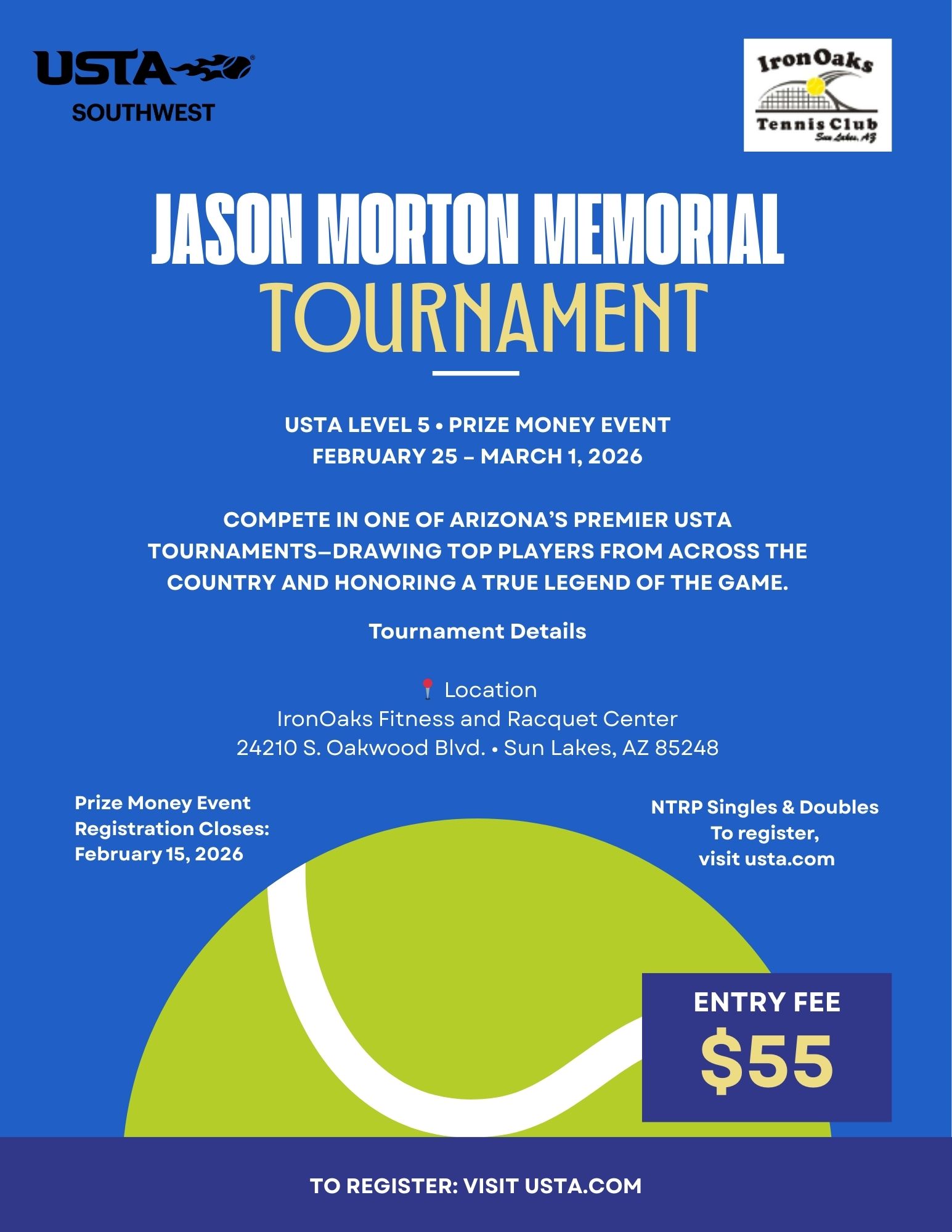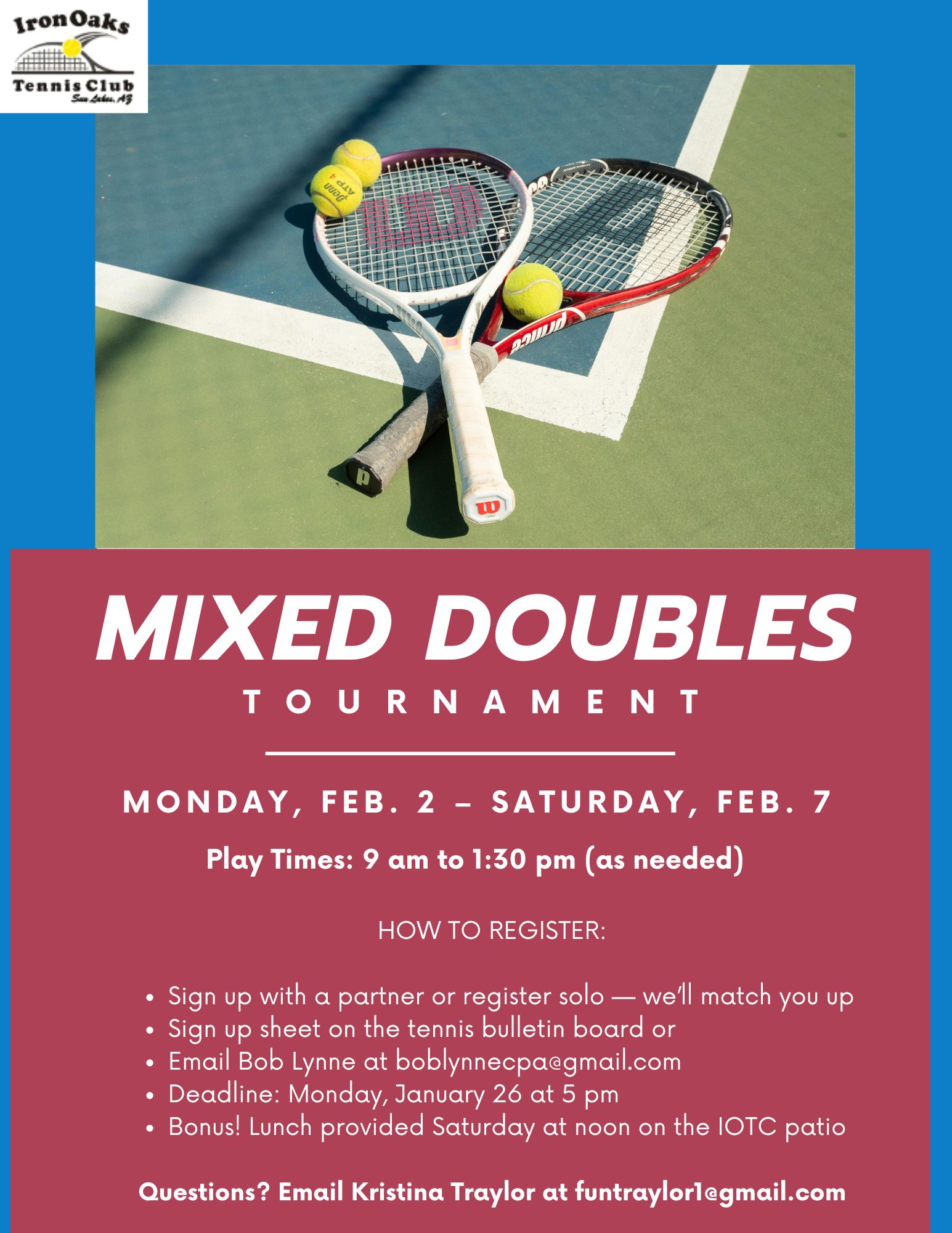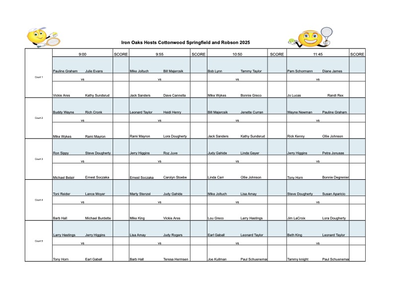 Stop by the IronOaks courts to see the full schedules and divisions