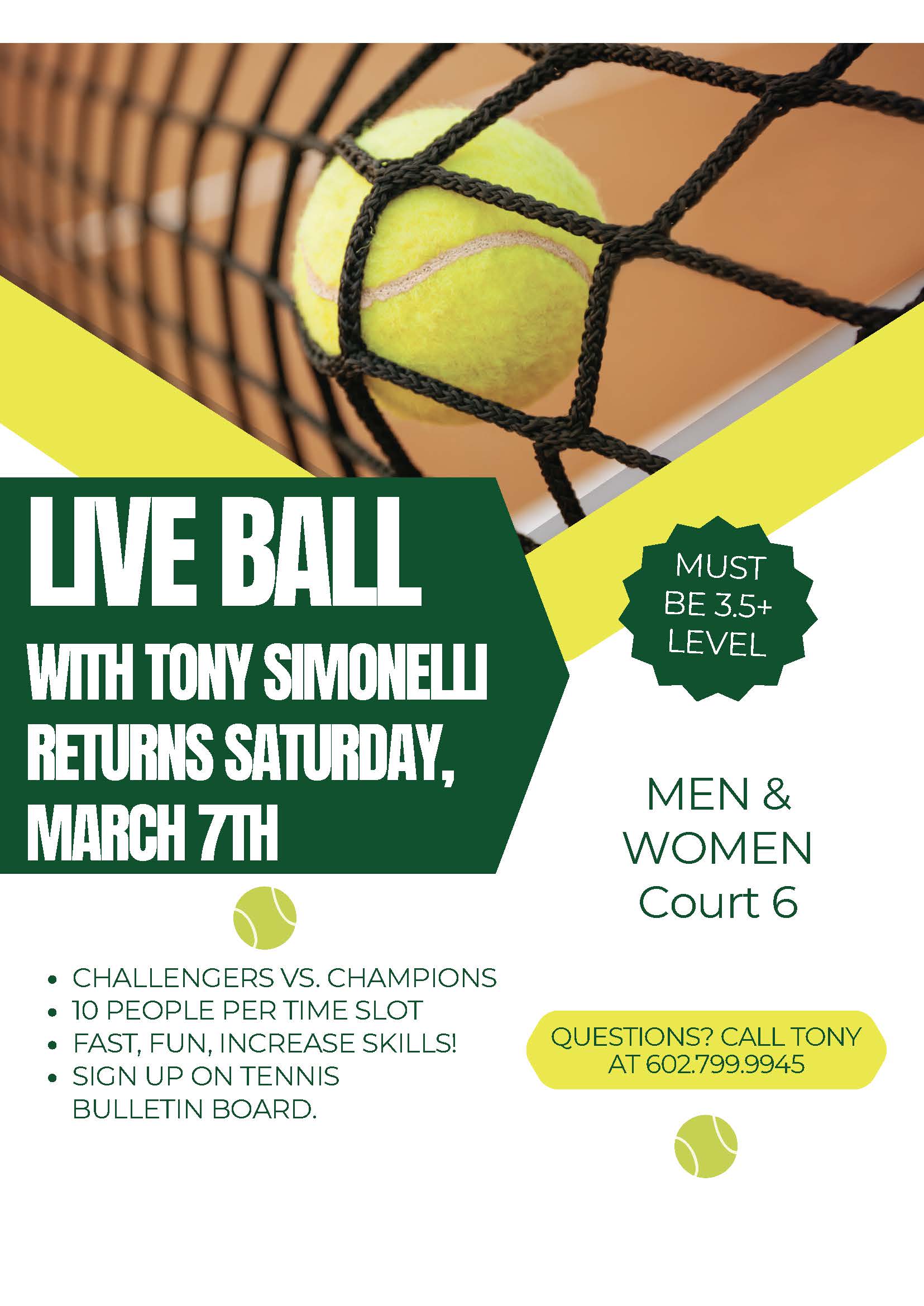 Call Kristina(480)665-8700 if you have any questions. Click here to find out when and whom you play.