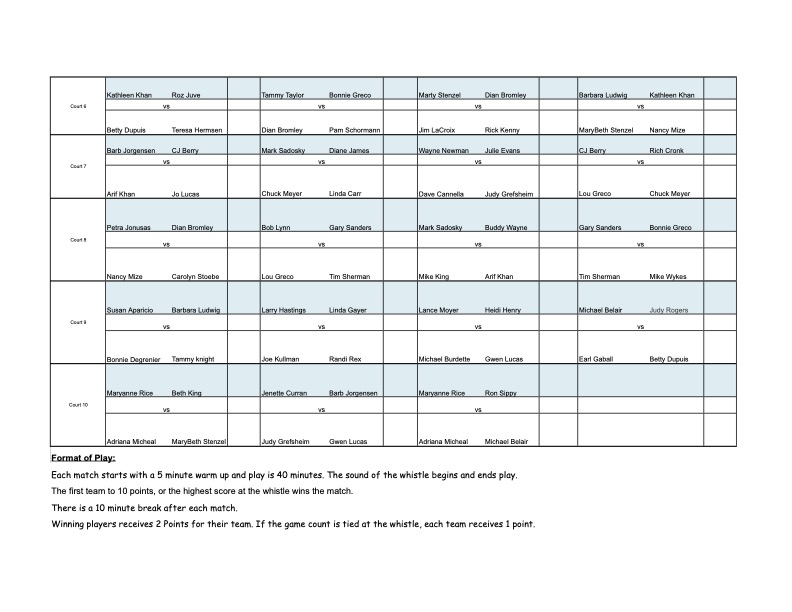 for the Mixed Doubles Schedule